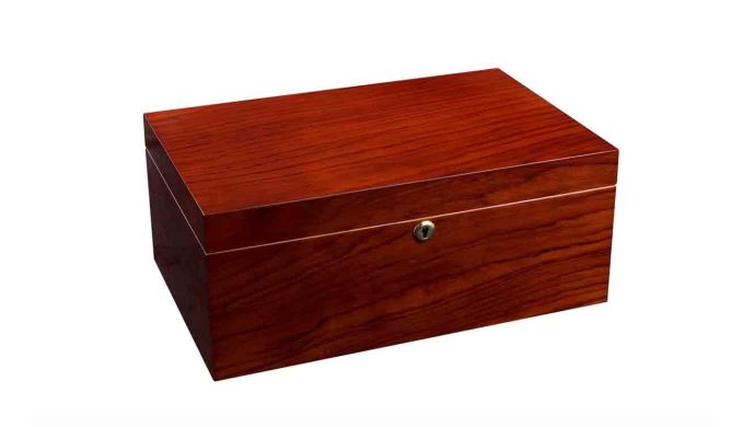 Der Santiago L Deluxe Humidor von Adorini bietet Platz für 150 Zigarren. Das Kirschbaum-Furnier des Humidors wurde mehrfach lackiert und auf Hochglanz gebracht. Etwa 150 Zigarren finden in diesem Humidor Platz. Außerdem ist der Humidor verschließbar.