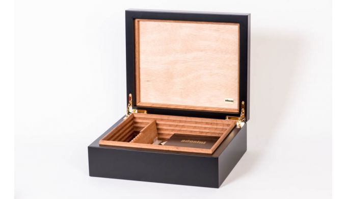 Der Adorini Torino Deluxe Humidor ist ein optimaler Humidor für den täglichen Zigarrenbedarf. Der Humidor ist für etwa 30 Zigarren ausgelegt, natürlich abhängig von der Größe der Zigarren. In allen Adorini Humidoren werden hoch präzise Haar-Hygrometer verwendet, der Acrylpolymer Befeuchter sorgt für eine optimales Zigarrenklima. Der extrastarke Korpus des Humdiors wurde mit hochwertigen Scharnieren bestückt. Der Innenraum des Humidors lässt sich durch das innovative Aufteilungssystem ordentlich unterteilen, um die Zigarren schön zu schlichten. Adorini gewährt auf die Funktion der Humidore eine lebenslange Garantie.