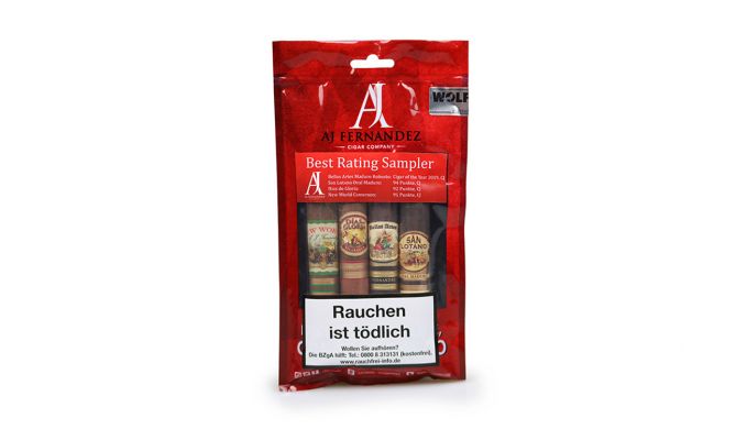 Mit dem AJ Fernandez Best Rating Sampler im praktischen FreshPack kommen Aficionados in den Genuss einer interessanten Mischung aus Best Rating-Zigarren. Der Sampler vereint folgende Zigarren im Robusto Format: