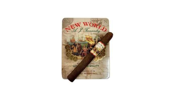 Der Blend der Linie New World ist in enger Zusammenarbeit von AJ Fernandez und seinem Vater Ismael entstanden. Die AJ Fernandez New World Tin ist eine Short Panatela und mit einer Länge von 101mm und einem 36er Ringmaß zugleich die Kleinste der gehaltvollen New World-Zigarren. Tabake aus dem berühmten Jalapa-Tal, Nicaragua finden mit Ligero aus Estelì, Condega und Viso Ometepe ein komplexes Zusammenspiel, welches sich geschmacklich mit erdigen und pfeffrigen Aromen und einer feinen Kaffeenote auszeichnet. Edle Nuancen von Bitterschokolade runden die gelungene Mischung ab. Geliefert in der Metalldose zu jeweils 6 Stück, finden die kleinen AJ Fernandez New World Tin`s eine hübsche Umverpackung und bieten zeitgleich den perfekten Schutz für Unterwegs.