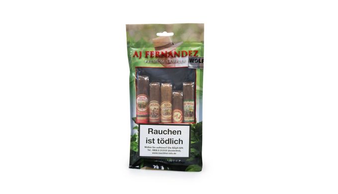 Mit diesem Sampler kann sich jeder Aficionado Gaumen auf ein grandioses Zusammenspiel feinster Aromen created by AJ Fernandez freuen. Der Sampler bietet im Gegensatz zum Einzelkauf (wenn möglich) einen Preisvorteil von knapp 30%.