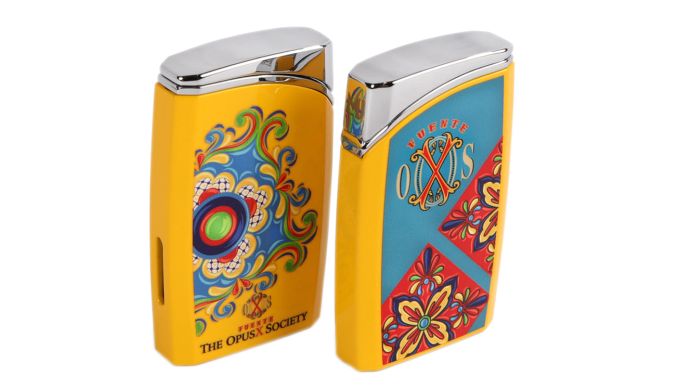 Die optische Inspiration bei der Gestaltung des Arturo Fuente Losas Taschenfeuerzeug liefern kubanische Kolonialfliesen. Die auffälligen, aber miteinander sehr harmonischen, Farben stechen einem sofort ins Auge. Es ist eine perfekte Ergänzung zur OpusX Zigarrenreihe. An der Seite des Feuerzeugs befindet sich ein Fenster zur Füllstandsanzeige, sodass diese immer im Blick gehalten werden kann.