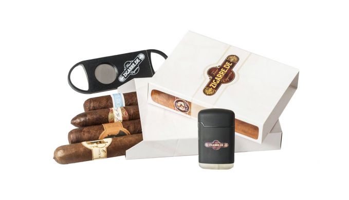 Außerdem liegt dem Boutique Cigars Sampler ein zigarre.de Jetflame und ein zigarre.de Cutter in bewährter Klingenqualität aus Solingen bei.