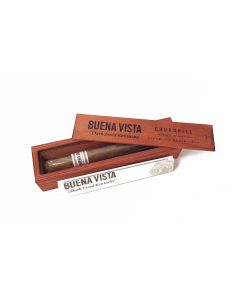 Buena Vista ist eine noch junge Marke aus dem Hause Arnold André. 2013 wurde Sie zur Intertabac vorgestellt. Highlight der exklusiven Tabakmischung aus Ecuador, der Dominikanischen Republik und Sumatra ist der brasilianische Araperique Tabak. Er wird in einem einzigartigen Verfahren in ehemaligen Whiskyfässern fermentiert und bekommt so sein außergewöhnliches Aroma. Auch die mit Design-Preisen ausgezeichnete Kiste ist ein wahrer Augenschmaus und bringt ein Stück Heimat mit sich. Sie stammen aus einer kleinen Manufaktur im Bayerischen Wald.