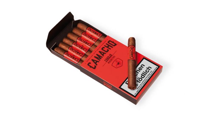 Die honduranische Camacho Machitos Corojo stammt zu 100 % aus honduranischem Corojo-Tabak. Der Longfiller wird in der Diadema Cigars de Honduras S.A. von Hand in ein 32er-Ringmaß gerollt und hat eine Länge von 102 mm. Das Aroma des Blends ist pfeffrig und intensiv, es sind Nuancen von Holz, Toast, Kaffee und Gras zu erkennen. Die Rauchdauer liegt bei bis zu 30 Minuten.
