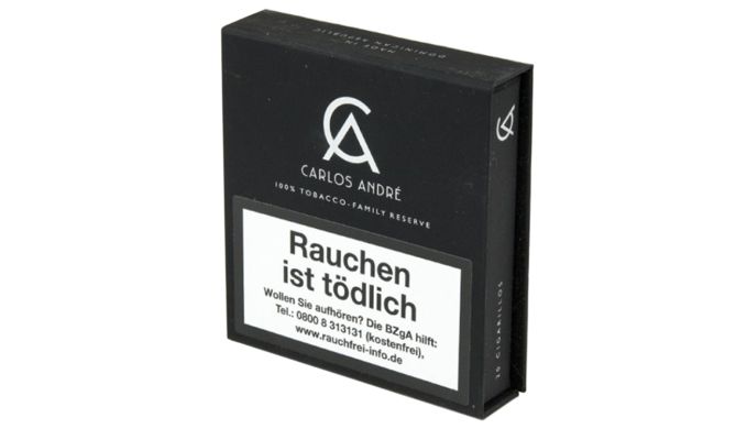Das faszinierend schöne und im Preis-Leistungs-Verhältnis überragende Zigarillo leuchtet in der schwarzen Verpackung fast golden. Das Deckblatt aus Connecticut Shade Ecuador ist schön verarbeitet und garantiert Rauchgenuss auf höchstem Niveau. Im Familienunternehmen Carlos André ist seit vielen Jahren bekannt, wie gute Zigarillos und Zigarren herzustellen sind. 8,6 cm lang ist das Prachtstück und ist mit ihrer Breite von 8 mm im typischen Zigarillo-Format und mittelstark in seiner Stärke. Ein Genuss von rund 15 Minuten für jeden Zigarillofreund.