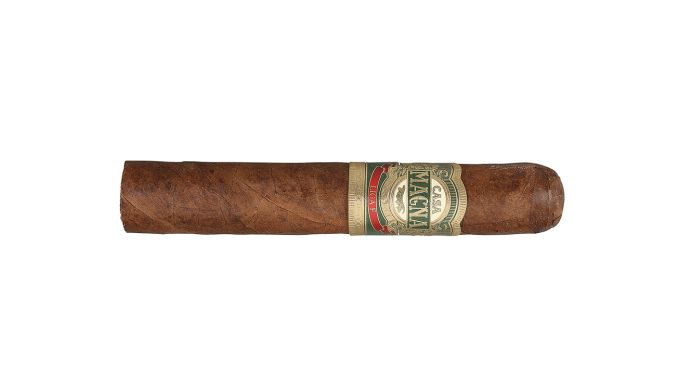 Die Casa Magna Liga F Robusto ist die neueste Kreation aus der Tabacalera Quesada Cigars (Matasa) in der Dominikanischen Republik. Sie kommt in der klassischen Robusto-Länge von 127 mm und mit einem etwas größeren Ringmaß von 54. Optimal aufeinander abgestimmte Volado, Seco und Ligero Tabake aus Nicaragua und der Dominikanischen Republik bilden zusammen mit einem dominikanischen Umblatt und einem Sungrown Corojo Deckblatt aus Ecuador die fertige Vitola. Sehr cremige Aromen von Kaffee und Zedernholz, sowie eine deutlich erkennbare Würzigkeit werden während der 60-minütigen Rauchdauer von einer leichten Süße begleitet und geben zusammen einen harmonischen Smoke ab.