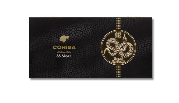 Das chinesische Neujahr steht 2025 im Zeichen der Schlange. Mit der Sonderausgabe der limitierten Designschatulle präsentiert die Habanos S.A. die Cohiba Short 88 weltweit - limitiert auf 21.888 Exemplare. Nur für kurze Zeit wird die im schwarzen Schlangenhaut-Design gehaltene Designschatulle angeboten. Enthalten sind 88 Exemplare der Cohiba Short.