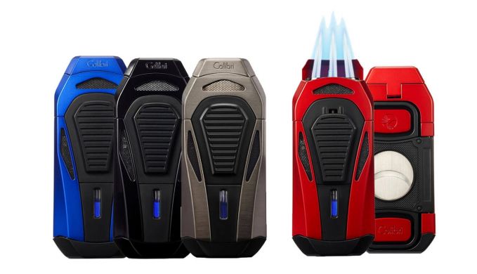 Ein besonders umfassenden Einsatz bietet das Colibri Boss III Jetflame aufgrund seines integrierten Guillotinen-Cutters. Mit rostfreien Edelstahlklingen gelingt ein messerscharfer 24mm Doppelschnitt und Zigarren bis zu einem Ringmaß von 54 werden problemlos für den perfekten Rauchgenuss vorbereitet. Dank der robusten und leistungsstarken 3er Jetflame lassen sich auch größere Zigarrenformate effizient und gleichmäßig entfachen. Das Colibri Boss III Jetflame bedient auch rein optisch den Ansprüchen anspruchsvoller Aficionados. Mit einer aussergewöhnlichen und fast futuristischen Form zieht das Feuerzeug alle Blicke auf sich. Als modernes, innovatives und leistungsstarkes Zigarrenaccessoire präsentiert sich das Colibri Boss III als zuverlässiger Begleiter, der den Zigarrengenuss schon im Vorfeld zu einem unvergesslichen Erlebnis macht. In den vier Farbvarianten rot glänzend/matt schwarz, blau glänzend/matt schwarz, gun gebürstet/matt schwarz und schwarz metallic/matt schwarz erhältlich.