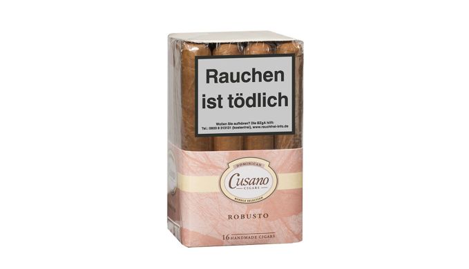 Der Geschmack der Cusano Selection Robusto wird vor allem durch die Tabakmischung vierer Regionen so besonders. Der 124 mm lange Longfiller mit 50er-Ringmaß kann bis zu 60 Minuten lang den Gaumen umschmeicheln. Die Robusto der Cusano Selection entsteht aus einer Auswahl verschiedener karibischer Tabake aus Mexiko, Indonesien, Honduras und der Dominikanischen Republik. Sie wird in der Dominikanischen Republik gerollt und trägt keine Bauchbinde.