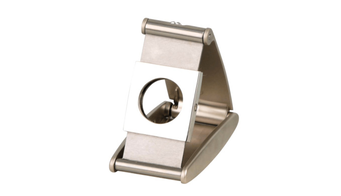 Der vernickelte Klappcutter sorgt für einen sauberen Schnitt aller Zigarren mit einem Durchmesser bis zu 19mm. Der Doppelklingen-Cutter ist aufgrund eines innovativen Klappmechanismus leicht ein und wieder auszuklappen. Im geschlossenem Zustand ist der Cutter xycm breit, xy cm hoch und xy cm lang und kann sicher und ordentlich verstaut transportiert werden. Im geöffneten Zustand bietet der Cutter mit Klappmechanik eine Unterstützung beim sauberen Cut für alle Zigarren bis zu einem 47er Ringmaß.