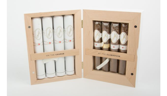 Dieser exquisite Sampler beinhaltet 8 Zigarren in einem absolut hochwertigen Holzkistchen. Für die Runde auf dem Golfplatz und die ersten 18 Löcher hat Davidoff die Limited Masters Edition Toro im praktischen Tubo verpackt. So geschützt lässt es sich auf der Golfrunde wunderbar genießen. Bei einem 54 Ringmaß und einer Länge von 15,2 cm ein wunderbarer Smoke für den Golfnachmittag. Nach einer entspannenden Runde Golf können Sie dann die Davidoff Golf Limited Masters Edition Robusto im Clubhaus genießen. Mit einem 52 Ringmaß und einer Länge von 13,5cm der optimale Abschluss einen Golftages. Der Blend beider Zigarren das beste aus der dominikanischen Republik ummantelt von einem wunderbaren Equador Deckblatt. Die aromareiche Einlage besteht aus Pilot Volado, San Vincente Virus, Pilot Visus und einem Hybridtabak aus Corojo und Olof. Einige der Einlage Tabake sind bis zu 8 Jahre gereift. Diese Kistchen sind streng limitiert. Perfekte Balance und fehlerfreier Abbrand ist natürlich selbstverständlich.
