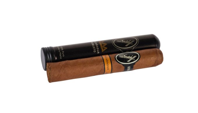 Dass Davidoff eine Serie lanciert, die nicht auf dominikanischem Tabak basiert, hätten wohl nur wenige erwartet. Nach 10 Jahren langer Reifung, wird der Tabak, der speziell für die Serie in Nicaragua angebaut wurde, in die Karibik verschickt und dort wie gewohnt von Hand gerollt. Das neue schwarz-silberne Design geht mit aromatischen Geschmacksnuancen einher, die auf nicaraguanischen Tabaksorten aus Jalapa, Esteli, Condega und Ometepe basieren. Das vielfältige Aroma reicht von pfeffrig scharf bis mild süß. Der Zigarrenliebhaber wird zudem Röstaromen sowie Kaffee- und Bitterschokoladennuancen herausschmecken. Die 12,7 cm lange Zigarre mit 50er-Ringmaß steckt voller Überraschungen und sollte in jedem Humidor einen Stammplatz finden. Zudem ist die Nicaragua Robusto in einer schicken Tubo verpackt - ein wahrer Eyecatcher und somit auch optimal als Geschenk geeignet.