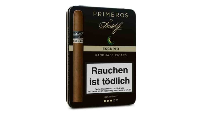 Die Davidoff Escurio Primeros erfreut Aficionados, die das brasilianische Temperament in kurzen Alltagspausen erleben möchten. Die Serie ermöglicht einen Genuss fein abgestimmter Tabake in außergewöhnlicher Balance. Ein Blend aus würzigem brasilianischen Cubra Seed und feinstem Mata Tabak, vereint mit hochwertigen dominikanischen Tabaken und abgerundet mit einem Deckblatt aus Carribbean Seed, schmeichelt den Gaumen erfahrener Aficionados. Die ausgewogene Entwicklung der Aromen im Rauch und das hervorragende Tabakbouquet versprechen großen Erfolg.