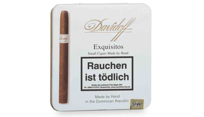 Die Davidoff Signature Exquisitos im Small Cigars-Format ist eine Zigarre der Premium-Kategorie und die kleinste handgerollte der Welt in ihrem Format. Trotz der geringen Länge von gerade einmal 9,3 cm und einem Durchmesser von 9 mm steht der Longfiller den großen Davidoffs in nichts nach. Die Ausgewogenheit im Geschmack und auch die Eleganz sprechen für die Davidoff Signature Exquisitos. Die Sensation des Geschmackangebots dieser Zigarre lässt sich trotz ihres geringen Ringmaßes von nur 22 in rund 15 Minuten vollstens genießen. Die kleine Davidoff Signature Exquisitos bietet denselben Rauchgenuss wie eine größere Zigarre und ist für kleine Momente gedacht, die mit großem Geschmack und Genuss gefüllt werden müssen.