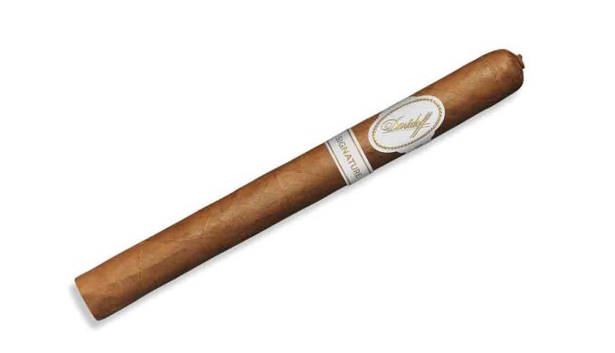 Die Davidoff Signature No. 2 im Panatela-Format mit Einlage und Umblatt aus der Dominikanischen Republik ist ein Highlight für alle Genießer. Mit relativ geringer Stärke, dafür aber erdig, holzigen Aromen, die sich mit blumigen Noten vermischen, nimmt die aromatische Zigarre jeden Raucher für sich ein. Die Lieblingszigarre der Freunde Zino Davidoff und Dr. Schneider hat eine Länge von 15,2 cm und ist mit ihrem Durchmesser von gerade einmal 15 mm eine sehr schlanke Begleiterin. Der cremige Abgang verfügt über ein Zöpfchen am Zigarrenende, das kennzeichnend für die No. 2 als auch die No.1 der Signature Serie ist. Wegen ihrer immer währenden Eleganz und dem aromatischem Rauchgenuss wird die Davidoff Signature No. 2 auf der ganzen Welt geehrt und gerne für ca. 60 Minuten geraucht.