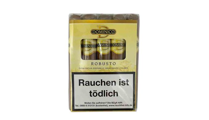 Bei der Dominico Robusto wird nur dominikanischer Tabak verarbeitet, welcher sich auch deutlich im Geschmack zeigt, der vor allem grasig-holzig sowie süßlich geprägt ist. Die Villiger Dominico Robusto sind eine hervorragende dominikanischen Zigarre für nur wenig Geld. Die Zigarren werden in der Dominikanischen Republik aus ausgesuchten Tabaken von Hand gerollt.