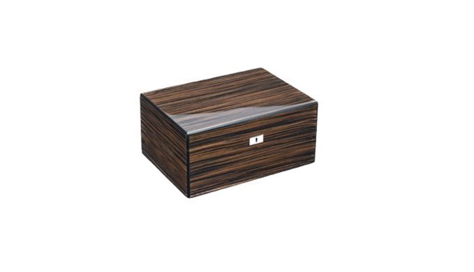 Die Humidore von Guy Janot sind seit 30 Jahren für herausragende Qualität und ein einzigartiges Befeuchtungssystem bekannt. Herzstück ist das Guy Janot Befeuchtungssystem mit offenporigen Mineralsteinen, die für eine optimale Feuchtigkeitsabgabe sorgen. Der Clou: Das System ist selbstregulierend. Nur alle 4 Wochen muss destilliertes Wasser nachgefüllt werden. Den Rest erledigt das System selbstständig. Ein Hygrometer ist nicht nötig. Ein weiterer Vorteil gegenüber den Acrylpolymerbefeuchtern ist die geringe Anfälligkeit und die höhere Lebensdauer. Qualitätsarbeit wird aber nicht nur beim Befeuchter geleistet: Alle Guy Janot Humidore sind im Inneren mit Zedernholz ausgekleidet, welches zusätzlich für Befeuchtung sorgt. Im Humidor befinden sich Trennbretter für eine geordnete Sortierung. Denn dieser Humidor fasst bis zu 80 Zigarren und gehört damit schon zur Galaklasse. Die große Wandstärke, die Dicke der Furniere und Hölzer und eine verzahnte Verarbeitung sorgen für ausreichend Stabilität. Der Guy Janot Humidor Makassar Glanz wurde per Handarbeit mit einem seltenen Makassarfurnier verkleidet. Zusammen mit der Hochglanzpolierung entsteht ein edler, einzigartiger Look. Dieser eleganter Blickfang von außerordentlicher Qualität wird Sie und Ihre Zigarren lange begleiten.