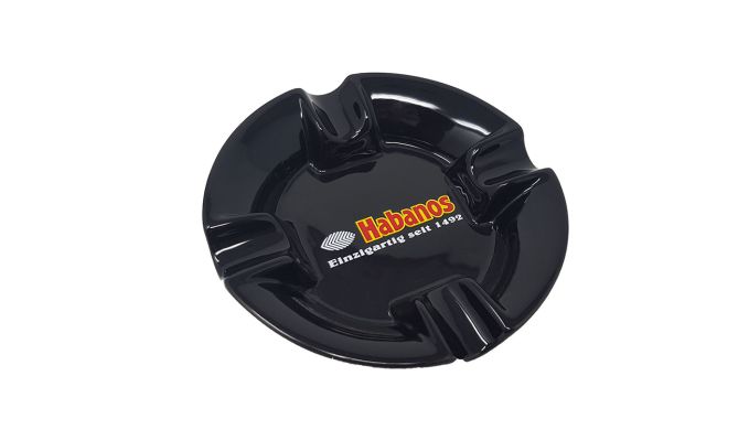 Zum Genussmoment gehört neben einer geselligen Runde auch ein stilvoller Aschenbecher. Der Original Habanos Aschenbecher in runder Form hält mit seinen 4 Ablageflächen und einer ausreichenden Tiefe von 2cm die Möglichkeit 4 Zigarren gleichzeitig abzulegen und die anfallende Asche aufzufangen. Mit dem Durchmesser von 17,8cm und dem am Boden angebrachte rot-weiß-gelbem Habanos Logo verzieren den Aschenbecher dezent und verweisen auf die Qualitätsmarke. Im zeitlosen schwarzem Lack gehalten, passt dieses Accessoire zu jeder Einrichtung und erfreut jeden Habanos Liebhaber. Damit Sie lange Freude an Ihrem neuen Habanos Ascher haben, empfehlen wir Ihnen die regelmäßige Reinigung mit einem feuchten Tuch. Verschenken Sie den Habanos Ascher doch zusammen mit unserem zigarre.de Anfänger Set und erfreuen Sie gute Bekannte oder Freunde.