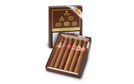 Der Sampler von Habanos enthält fünf der beliebtesten Habanosmarken. Je zwei Havannas von Cohiba, Montecristo, Romeo y Julieta, Partagás und H.Upmann. Eine einmalige Selektion, die es in dieser Zusammenstellung nicht häufig am Markt erhältlich ist. Nicht nur Sammler und anspruchsvolle Aficionados freuen sich auf diese edle Zigarren-Mischung, die sich in einer glänzend lackierten Holzkiste präsentiert. Durch die verschiedenen Marken mit ihrem ganz individuellen Geschmacksprofil läßt sich die Vielfalt der Habanosmarken und ihrer Mischungen auch für Neueinsteiger entdecken. Der Habanos Selección Petit Robustos Sampler eignet sich perfekt als Geschenk und als Aufmerksamkeit für besondere Gelegenheiten.