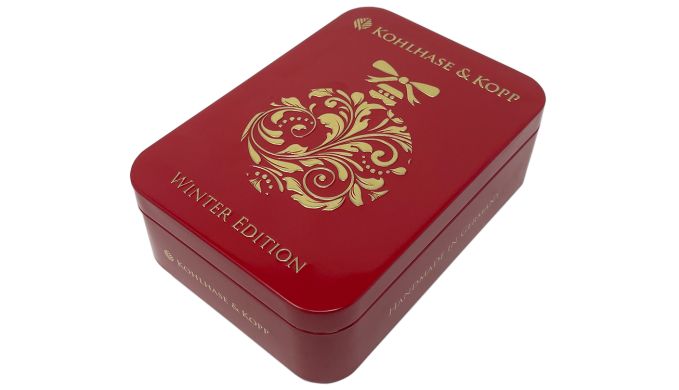 Der Kohlhase & Kopp Winter Edition 2022 ist ein intensiv-aromatisierter Pfeifentabak. Im mittleren Stärkesegment angesiedelt duftet der Winter Edition 2022 nach reifen Mandarinen, Zimtsternen und cremiger Zartbitterschokolade. Black Cavendish, Virginia und Flakestückchen liefern ein hervorragendes Tabakbild.