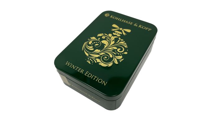 Die Loose Cut-Mischung aus tiefschwarzem Black Cavendish und goldenem Virginia verspricht eine mild-kräftige Stärke mit süßen Aromen von Milchschokolade, Mandel und süffigem Amaretto. Die Raumnote der Winter Edition 2023 ist präsent, aber nicht störend.