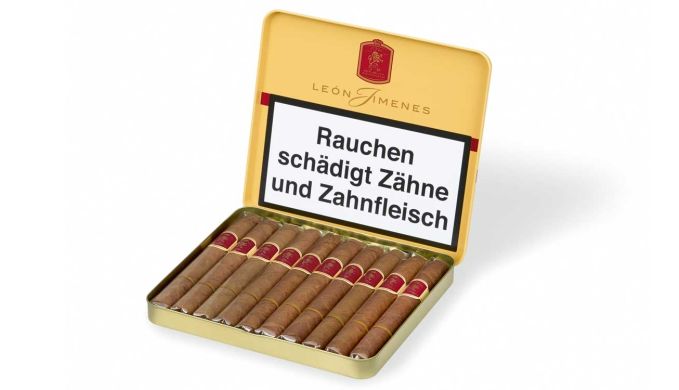 Der 100 mm lange und mit einem Durchmesser von 13 mm schmale Zigarillo betört bereits im Kaltgeruch mit einer angenehmen Vanillenote. Bereits angeschnitten erwartet jeden Aficionado ein wunderbarer, geschmacklich milder und zunehmend würziger Zigarillo. Die Balance zwischen harmonischer Vanillesüße und leichter Würze lädt auch Einsteiger zu einem aromatischen Smoke von ungefähr 20 Minuten ein. Ob zu einer kurzen Kaffeepause mit Cappuccino, Milchkaffee oder auch wahlweise zu einem irischen Whisky: die Leon Jimenes Petites Blond passt immer. Eine hervorragende Qualität zu einem guten Preis-Leistungs-Verhältnis machen die Leon Jimenes Petites Blond zu einer eindeutigen Kaufempfehlung.
