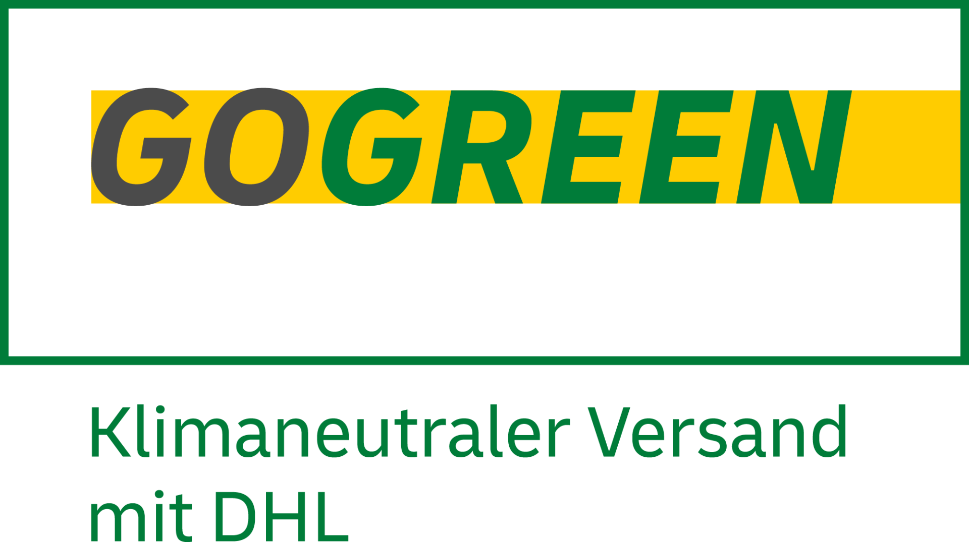 Außerdem nehmen wir am Programm GOGREEN teil. Das heißt, unsere Pakete werden vollständig CO₂-neutral versendet. Im Rahmen der GOGREEN Initiative vermindert DHL durch den Einsatz alternativer Fahrzeuge und Kraftstoffe die CO 2-Emissionen beim Pakettransport.