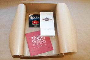 Sobald unsere Mitarbeiter die Ware nach zuverlässiger Kontrolle für einwandfrei erklären, erhält die Lieferung das Qualitätssiegel in Form eines hauseigenen Aufklebers und dem Zigarre.de Stempel auf dem Umkarton. Entstehende Hohlräume werden zusätzlich mit Packpapier ergänzt. Da unsere Verpackung fast ausschließlich auf Papier basiert, wird sie auch Umweltfragen gerecht.