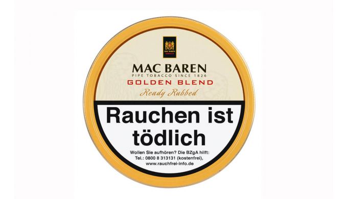 Der Mac Baren Golden Blend ist eine kräftige Burley-Mischung mit einem ausgeprägten Geschmack des herben Burley-Tabaks. Die Mischung besteht aus Virginia aus Brasilien und Burley aus Malawi. Die kleinen Stücke des Presstabaks sorgen dafür, dass der Tabak leicht zu stopfen ist und gleichmäßig und langsam abbrennt.