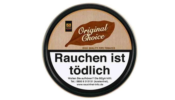 Der Mac Baren Original Choice ist ein loser Pfeifentabak. Die Mischung besteht aus Virginia Tabak aus den USA und Brasilien, Burley aus Malawi und Mexiko und Modern Cavendish aus den USA. Die Mischung sorgt für einen mittelkräftigen Pfeifengenuss mit einem süßlichen Geschmack. Der lose Tabak ist leicht zu stopfen und überzeugt mit gutem Brandverhältnis.
