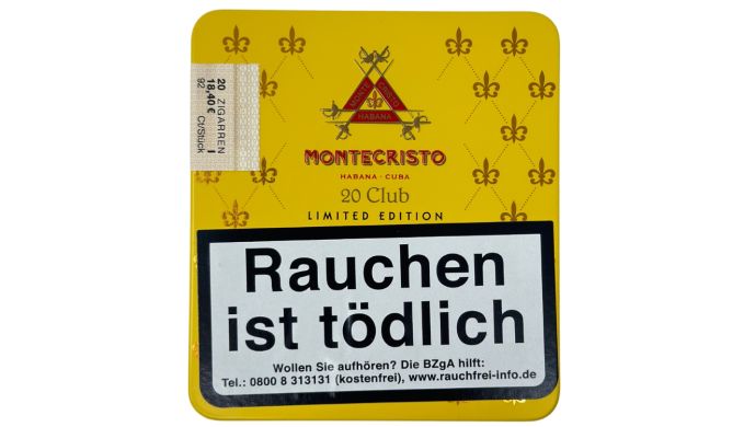 Die kleine Kubanerin Club von Montecristo überzeugt mit typisch kubanischem Aroma. Fruchtige Noten gesellen sich ebenso zum besonderen Gaumenerlebnis. Ab der Mitte des Smokes wird Club zu einem leicht scharfen Zigarillo, das über ein einwandfreies Zug- und Abbrandverhalten verfügt. Knapp 10 cm Länge und ein Durchmesser von 10 mm versprechen 15 Minuten Rauchgenuss auf höchstem Niveau. Das Club Zigarillo gehört zur stärkeren Rubrik mit intensivem und kräftigem Aroma. Der im Vergleich durchschnittliche Preis wird mit einem überdurchschnittlichen kubanischen Geschmackserlebnis belohnt – Club von Montecristo sollte in keinem gut bestückten Humidor für das besondere Highlight zwischendurch fehlen.