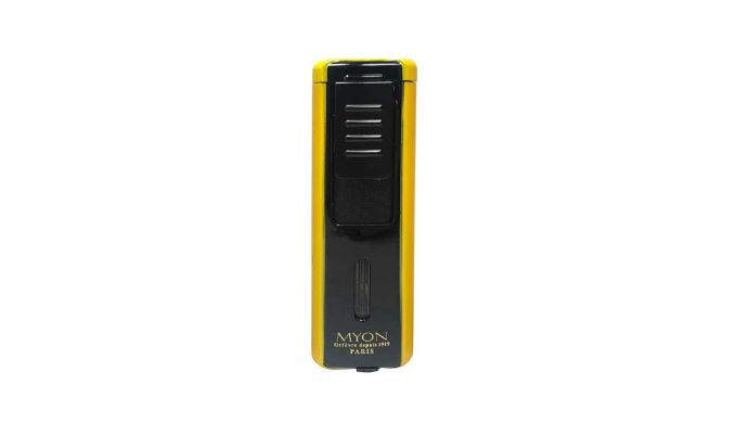 Das Myon 3er Jetflame in der Racing Edition verfügt über einen einfachen Zündschieber, der auch einhändig problemlos betätigt werden kann. Ein Sichtfenster zeigt Ihnen den Füllstand des Tankes an, der wiederbefüllbar ist. Am Fuß des Jetflames kann eine Zigarrestanze herausgeklappt und genutzt werden. Erhältlich ist die Myon Racing Edition in den Farben gelb, schwarz und rot.
