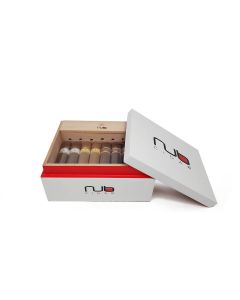 NUB ist vielen Aficionados ein Begriff. Es ist nicht nur der Name einer jungen, berühmten Marke. NUB bedeutet übersetzt "Essenz" und beschreibt so am besten, was die kurzen, dicken Zigarren aus Nicaragua bieten. Sam Leccia war bei Oliva-Zigarren tätig und erwarb dort umfassendes Wissen über Tabakverarbeitung und Zigarren. 2008 gründete er sein eigenes Unternehmen und lancierte im selben Jahr eine Zigarre in einem neuen Format und einer neuen Kategorie. Nicht viele Hersteller können den Erfolg in einer völlig neuen Kategorie vorweisen. Sam Leccias Ziel war es, Zigarren zu kreieren, die den wesentlichen Kern des Geschmacks hervorheben. Viele Aficionados, einschließlich Sam Leccia, sind der Meinung, dass es einen bestimmten Teil der Zigarre gibt, in dem das volle Aroma erlebt werden kann. Dies sind die bekannten 100 mm einer Zigarre. In diesem Abschnitt sind die Aromen am intensivsten. Daher haben NUB Zigarren eine Länge von ca. 10 cm, wobei der Durchmesser variiert. Um eine Zigarre zu schaffen, die vom ersten Zug an voll genießbar ist, waren viele Versuche erforderlich. Sam Leccia experimentierte mit verschiedenen Ringmaßen, Längen und Tabaksorten, bis er das gewünschte Ergebnis erzielte. Tests zeigten, dass ein Ringmaß von 60 und eine Länge von 102 mm ideal sind, um den besonderen Charakter der Zigarre hervorzubringen. Trotz ihres großen Formats stehen NUB Zigarren anderen in nichts nach. Nur die Rauchdauer einer NUB Zigarre ist kürzer. Durch die Verwendung der gleichen Tabakmenge wie bei einer Churchill oder Robusto Zigarre wird einem Aficionado bis zu 45 Minuten Genuss mit 100 mm geboten. Die Kombination aus Größe und Tabakmenge führt zu einer sehr festen Asche. Viele Aficionados kennen das berühmte Bild einer aufgerauchten NUB, die auf ihrer eigenen Asche steht. Ein weiterer Vorteil der Zigarre ist die große Menge an schmackhaftem Rauch, der mit einem leichten Zug in die Mundhöhle gelangt.