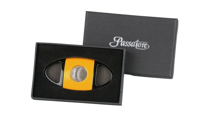 Dank seiner ergonomischen Form und einem Eigengewicht von ca. 80 g liegt der Passatore Metallcutter bequem und wertig in der Hand und erleichtert mit einem Doppelschnitt das Anschneiden von Zigarren bis zu einem Ringmaß von 57. Geliefert in einer schlichten schwarzen Schatulle mit elegantem Passatore Schriftzug, eignet sich dieser hochwertige Cutter auch als Geschenk für jeden Zigarrenliebhaber.