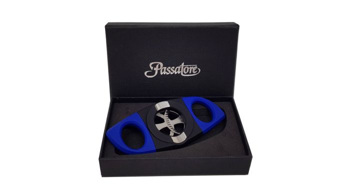 Seine ausgestanzte Doppelklinge mit gezahnter Oberfläche schneidet Zigarren bis zu einem Durchmesser von 27mm präzise an. Die silberne Zigarrenablage ab hebt sich elegant vom schwarz gummierten Mittelstück ab und bietet ganz nebenbei eine praktische Möglichkeiten den Zigarrenschneider auch als Ablage zu nutzen. Ein wunderbares 2-in-1 Geschenk für jeden Aficionado, der es gerne farblich und sportlich mag.