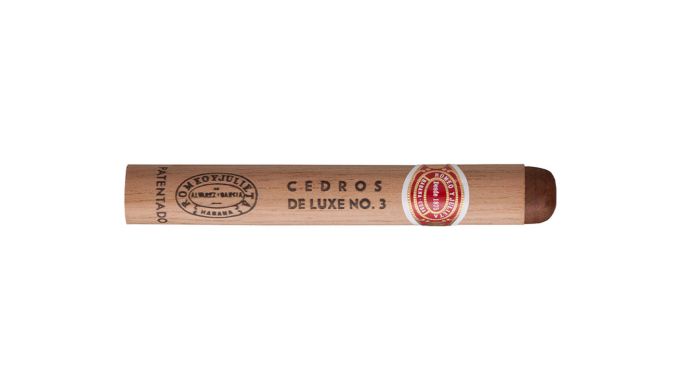 Mit einer Länge von 129mm und einem schlanken 42er Ringmaß umschmeichelt die Romeo y Julieta Cedro de Luxe No. 3 mit einer Fülle an feinwürzigen Aromen. Mit der im Mareva-Format gefertigten Zigarre lässt sich ein unkomplizierter Rauchmoment erleben. Im Zug- und Abbrandverhalten tadellos, umhüllt die Romeo y Julieta Cedro de Luxe ein dünnes Zedernholzblatt, das in Kombination mit dem verwendeten Colorado Deckblatt eine ausserordentliche Fülle an Aromen bereit hält. Von Beginn an sind erdige und grasige Aromen zu spüren, die im weiteren Verlauf mit Nuss und etwas Holz ergänzt werden. Ab dem zweiten Drittel nimmt die Würze zu und die Kubanerin entwickelt eine geschmackliche Stabilität. Die Romeo y Julieta Cedro de Luxe No. 3 weiss ihr großes Potential zu zeigen und überzeugt mit einer kontinuierlichen Ausgeglichenheit und typisch markeneigenen Geschmack.