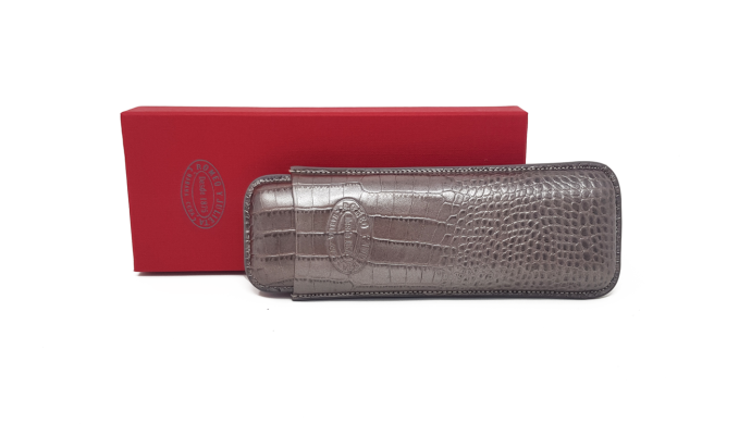 Aus feierlichem Anlass bekommt die weltbekannte Zigarrenmarke Romeo y Julieta Zuwachs im Zigarrenzubehör. Gleich zwei edle Zigarrenetuis präsentiert die Habanos S.A. zum 145jährigem Jubiläum. Das Romeo y Julieta Etui silber besticht durch eine interessanten Farbvariante, die sich zwischen einem eleganten Grau mit schimmernden Silber-Stich definiert. Elegant, zeitlos und stilecht in moderner Krokodilleder-Optik bietet das Etui Platz für zwei Zigarren bis zu einem Ringmaß von 52. Ob als Geschenk oder als modisches Accessoire für Aficionada`s, das Romeo y Julieta Etui silber ist auffallend schön und edel zugleich.