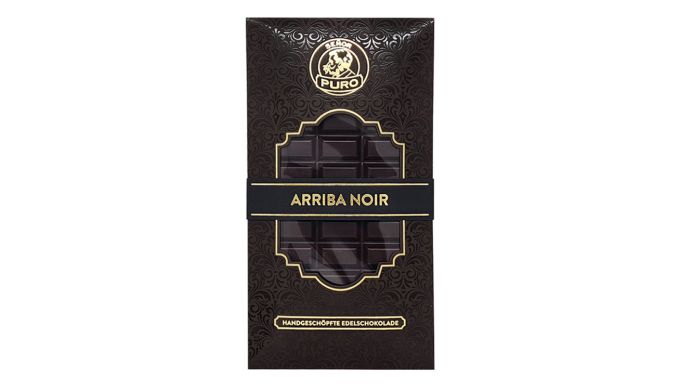 Tiefdunkle Schokolade aus „Criollo Nacional“- Edelkakao mit Herkunftsbezeichnung Arriba Mocache, Los Rios/Ecuador. Ihr wunderbarer Kakaogeschmack ist durch eine intensive Kaffee- und Lakritznote geprägt. Das traditionell schonende Herstellungsverfahren bringt zudem ein kräftiges Dörrpflaumen-Bouquet zum Ausdruck, das beim langanhaltenden Abgang durch eine leichte, geradezu blumige Cassis-Note ergänzt wird. So wird die Tafelschokolade „Arriba Noir“ zu einem unvergesslichen Sinnerlebnis.