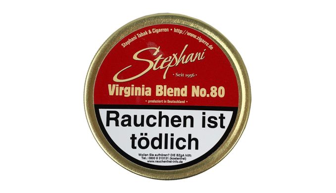 Verschiedene aufeinander abgestimmte Virginia Grades entwickeln beim Stephani Virginia Serenade Pfeifentabak No. 80 eine leicht aromatische Süße, die ohne zusätzliche Aromatisierung auskommt. Der Pfeifentabak eignet sich perfekt, um andere Tabake etwas zu verfeinern.
