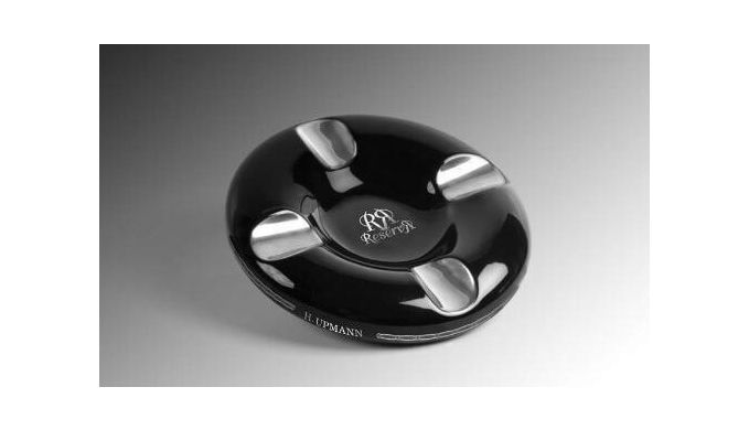Für den unbeschwerten Rauchgenuss der Lieblingsformate von Premiumzigarren stehen unterschiedliche Accessoires zur Verfügung. Die bekannte und erfolgreiche Marke H. Upmann designte einen stilvollen und im Design zeitlosen Aschenbecher. Der schwarze Ascher wird von einem edlen silbernen Schriftzug mit H. Upmann Reserva verziert. Als optischer Hingucker veredelt der Hersteller die vier großzügigen Ablageflächen mit Silber Farbe.