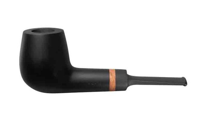 Die VAUEN Olaf wurde mit einem Bruyèreholz - Schmuckring versehen. Die Olaf hat eine seidenmatte, schwarze Oberfläche.