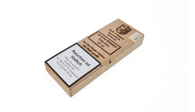 Die Kleine Herren Virginia N.12 werden in Deutschland von der Manufaktur Wolf & Ruhland von Hand hergestellt. Bei diesem Produktionsprozess, werden die einzelnen gerollten Zigarren kunstvoll gedreht. Mit dem Siegel für "Echte Handarbeit" kommen die wahren Kunstwerke bei unseren Kunden sehr gut an. Die Einlagemischung besteht aus ausgewählten würzigen Virginia- Sorten, selbstverständlich ohne Aromastoffe und sonstige künstliche und chemische Zusatzstoffe. Man sagt,dass sich der Virginia-Kenner sein Tabakkunstwerk mit dem Lufthalm aus spanischem Binsengras entzündet, das praktischerweise vor dem Genuss aus der Zigarre entnommen werden kann. Wir sind begeistert von dieser einzigartigen und bemerkenswerten Zigarre und wünschen einen angenehmen und interessanten Rauchgenuss.