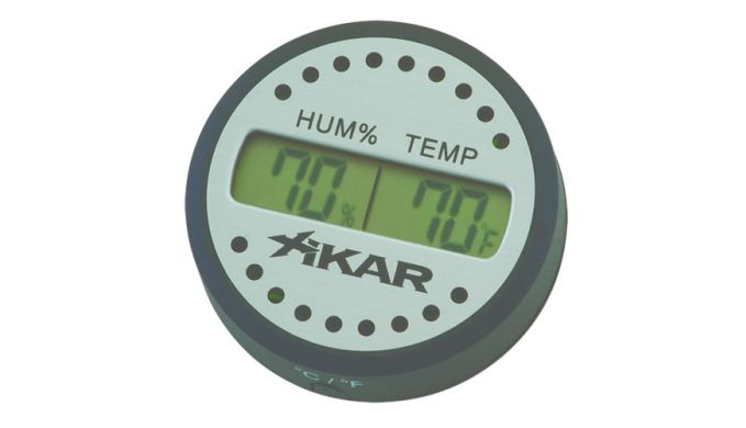 Der hochwertige digitale Hygrometer und Thermometer von der begehrten Marke XiKAR dient zur sicheren Kontrolle Ihres Humidors. Der Hygrometer, im runden Design, ist zudem kalibrierbar und dementsprechend individuell bedienbar. Mit einem Durchmesser von nur 5 cm, ist der Hygromether handlich und auch für kleine Humidore geeignet. Mit der selbstklebenden Magnetbefestigung kann das Gerät ganz einfach an der Rückseite des Humidors angebracht werden. Wie bei allen XiKAR Produkten gilt auch hier: perfekter Service durch eine Sofort-Austausch-Garantie innerhalb der nächsten 20 (!) Jahre, falls das Produkt Fehler aufweisen sollte.