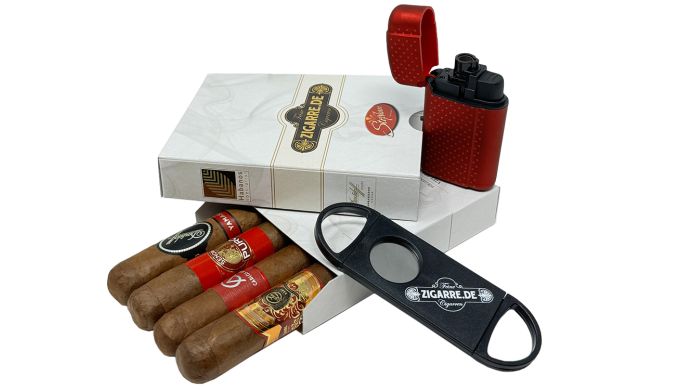 Zudem liegt dem Sampler ein zigarre.de Cutter und ein weihnachtlich-rotes Jetflame bei.