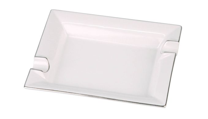 Ein weiteres, wichtiges Zubehör für Aficionados ist, neben dem Cutter und dem Feuerzeug, der Zigarrenaschenbecher. Aficionados werden unzählige Formen und Varianten in unterschiedlichen Preiskategorien angeboten. Für Aficionados die stilvolle, zeitlose Ascher bevorzugen, bieten wir Ihnen einen Zigarrenaschenbecher aus Keramik, mit weißer Emailierung an. Durch den zeitlosen Stil des Aschers passt dieser zu jeder Einrichtung und zu jeder Örtlichkeit. Der weiße Zigarrenascher mit 2 Ablagen bietet sich perfekt für kleinere Zigarrenrunden an. Die Ablagen können Sie nutzen, um Ihre Zigarre abzulegen. Die Asche fällt während der Ruheposition der Zigarre, in die Mulde des Aschers ab und nicht unkontrolliert auf Möbel oder den Boden. Durch die angepasste Form der Ablagemulde wird die Chance des Wegrollens der Zigarre eingedämmt. Wenn Sie Ihre Zigarre anschneiden, können Sie dies über dem Ascher durchführen. Der Anschnitt fällt in die Mulde des Aschers und kann später mit einem einfachen Entleeren in einen Aschebehälter entsorgt werden. Bei den Maßen 3,5x21x17 cm bietet dieser Zigarrenaschenbecher mit stilvollem silberfarbigen Rand, Platz für mind. 2 Zigarren. Um besonders lang Freude an Ihrem Aschenbecher für Zigarren zu haben, empfehlen wir Ihnen eine regelmäßige Reinigung.