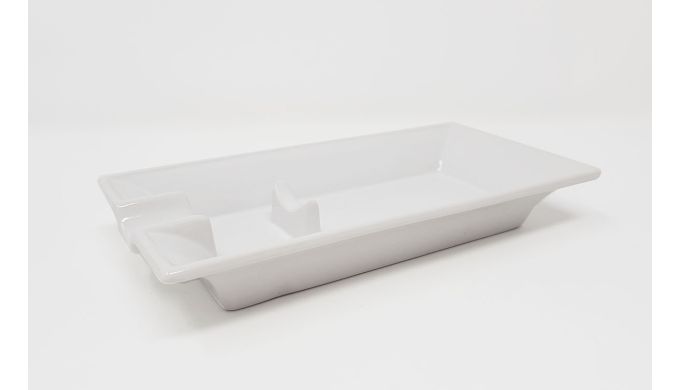 Mit einer Breite von 19 cm und einer Tiefe von 9 cm bietet der längliche Zigarrenaschenbecher eine platzsparende und praktische Möglichkeit, seine Zigarre abzulegen. Mit einer Tiefe von 2cm kann der elegant und zeitlos wirkende Aschenbecher die abfallende Ascher aufnehmen. Ein am Boden fest integrierter Steg stabilisiert die abgelegte Zigarre zusätzlich, so dass der Zigarrenfuss nicht in die Asche gelegt werden muss. Ideal als Geschenk oder kleine Aufmerksamkeit für Aficionados, die nach einem unaufdringlichen und doch eleganten Zigarrenaccessoire suchen.